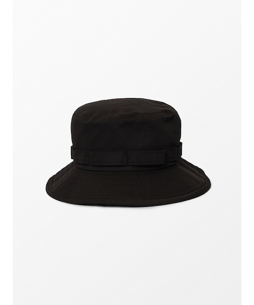 ■紐付きのハット。CORDURAの生地を使用した、タフでソフトな素材感が特徴のアイテムです。つば先にワイヤーを通すことで、自由に形を作ることが可能。ドローコード調節によるフリーサイズとなっています。
