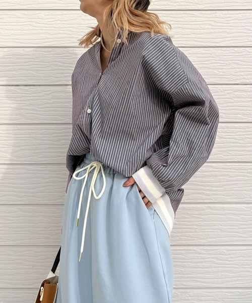 Qで定番大人気の袖と裾にリブがあしらわれている1枚でサマになるシャツが登場です。落ち着いた身頃のカラーにリブはカジュアルな差し色を入れ、アクセントのある仕上がりに。程よいヌケ感で、お洒落な雰囲気のオーバーサイズが◎ストライプは細いピッチの中にカラーが入っており、カジュアルなポイントを入れながらも上品な雰囲気に仕上がっています。しわになりにくいお素材でお取り扱いもしやすいです。ボタンを止めて着ても、襟抜きでリラックス感を出すのもおすすめ。さらりとした肌触りの素材を使用しているので、幅広いシーズンで大活躍間違いなしのアイテムです。※商品の色味は、撮影場所や光のあたり具合などにより色味が違って見える場合がございます。 また、ご覧のモニター環境や撮影環境により実際の商品と多少色味が異なって見える場合がございます。 予めご了承の上ご注文下さい。《インフォメーション》◆商品のお気に入り登録完売していても再入荷時に再入荷通知を受け取ることができますので、是非ご登録ください。◆ブランドのお気に入り登録新商品や再入荷などの情報を受け取ることができますので、是非ご登録ください。