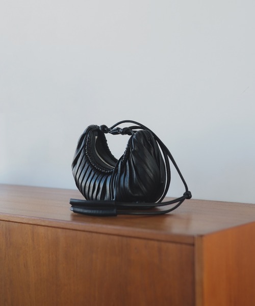 ■デザイン 洗練された曲線美が目を惹く、リブルクロスボディバッグ。 その日の気分やシーンに合わせて、ショルダーバッグやクロスボディバッグへとスタイルを自在に変えられる多機能なデザインです。金属製のスナップを閉じれば持ち手としても使用でき、ハンドバッグのような佇まいにも変化。実用性と遊び心を兼ね備えた、大人のためのモダンな一品です。 ■コーディネート ジャケットやセットアップなど、きちんとしたオフィススタイルに抜け感を加えるアイテム。 深みのあるカラーリングで、淡色のワントーンコーデを引き締めるスパイスとしても活躍します。休日はストラップを短くしてボディバッグ風に持ち、デニムスタイルに大人のクラス感をプラスして。 ■ディテール ストラップの両端にあしらわれたノットにより長さの調整が可能。 ショルダーの中央に配されたパッドは、肩への負担を軽減し滑り落ちも防ぐコンフォートな仕様です。 ■サイズ クラシックで使い勝手の良いサイズ感。 ■素材 柔らかく軽量な羊革を使用。 表面の繊細なドレープは、使い込むほどに自然に馴染み、よりエレガントな表情へと進化します。 ■ケア方法 濡れた場合は、乾いた柔らかい布で手早く水気をとり、風通しの良い場所で陰干しして下さい。また、保管の際は温度・湿度が低く光の当たらない通気性の良いところにお願いします。 ※光の当たり具合やパソコンなどの閲覧環境によって実際の色味と異なって見える場合がございます。予めご了承ください。 ※商品の色味は商品単体で撮影した画像をご参照ください。 BOGKI / ボグキ 『振り返る(復)、記録する(記)』をテーマに、時間と経験の中で見出した美しさを現代的に再解釈するブランド。造形美と工芸的なディテールを備え、単なる道具を超えた『作品』としてのバッグを提案しています。独創的なフォルムの中に美的価値と実用性の調和を目指すことで、日常に自然に溶け込み、時を重ねるほどに深まる美しさを表現しています。