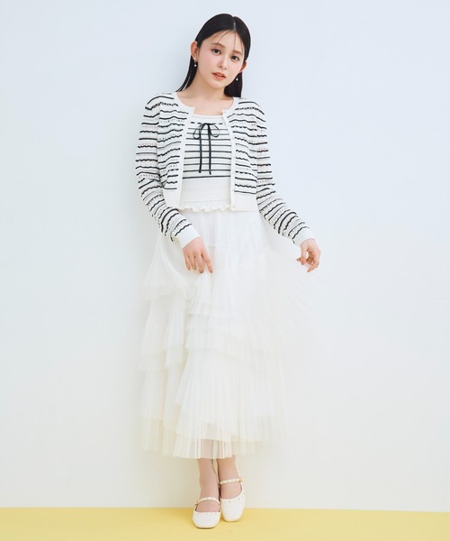 柔らかなチュールに繊細なプリーツを入れ、アシンメトリーに配置したティアードが軽やかな動きを描くスカート。段差のあるレイヤードが立体感を生み出し、華やかさの中に上品さを漂わせます。シンプルなトップスに合わせるだけで装いが華やかになり、デイリーからオケージョンまで活躍する存在感のある一枚。纏うたびに気分を高め、女性らしさを引き立ててくれるアイテムです。【おすすめ骨格タイプ】■骨格ストレート■骨格ウェーブ■骨格ナチュラル※照明の関係により、実際よりも色味が違って見える場合があります。またパソコン・スマートフォンなどの環境により、若干製品と画像のカラーが異なる場合もございます。予めご了承ください。商品の色味は、商品単品画像をご参照下さい。 ※商品画像はサンプルのため、色味やサイズ等の仕様に変更がある場合がございますので、予めご了承ください。