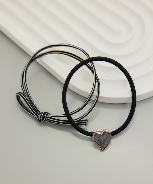 【デザイン・シルエット】 ・さりげない甘さが魅力のハートモチーフチャームをあしらったヘアゴムセット。 ・細ゴム×リボン風デザインで、結んだときに立体感が出るシルエット。 ・小ぶりなハートが主張しすぎず、大人も取り入れやすいバランス。 【カラー】 ・ブラック、ベージュ、ピンクの3色展開。 【スタイリングポイント】 ・まとめ髪の仕上げに使って、シンプルコーデのアクセントとして。 ・手首につけて、ブレスレット感覚のアクセサリー使いもおすすめ。 ※撮影時の光、お使いのモニター環境によって色の見え方が違う場合がございます。