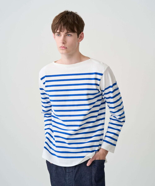 <デザイン>- 本家本元の長袖ボーダーマリンシャツ- レギュラーフィット- ボートネック- 左裾にブランドアイコン<素材>一般的なカットソー地に比べ非常に多くの糸を使用した複雑な構造が特徴。今ではフランスに数台しか残っていない機械で、当時の製法をそのまま継承して作られています。通気性に優れており、年間を通して着用が可能。着込むほどに風合いが増し、体に馴染んでいく、まるでデニムのような経年変化を楽しめます。<メーカーカラーについて>GREY系1:WHITE×STEEL GREYBLUE系1:WHITE×BLEU<サイズについて>こちらの製品はサイズ1,2,3,4,5,6のユニセックス展開で、数字に比例してサイズは大きくなります。レディースサイズ(品番:#6803)、メンズサイズ(品番:#6101)から、お好みのサイズバランスをお選びください。[製品について]こちらの製品は洗い加工を施しておりません。その為、生地の特性上、通常の家庭洗濯でヨコ方向(身幅や袖幅)に2センチ前後の縮みが発生します。お買い求めの際はサイズにご注意ください。また、洗濯での型くずれが生じる場合があります。洗濯後にはヨコ方向に少し伸ばし気味に形を整え、干してください。乾燥機のご使用はお避けください。※着用、お取り扱いの際は商品についておりますアテンションタグ、洗濯ネームを必ずご確認ください。※モデル撮影画像は、光の当たり具合やパソコンなどの閲覧環境によって、実際の色味と異なって見える場合がございます。商品の色味は商品単体で撮影した詳細画像をご参照ください。メーカー品番:#6101ORCIVAL | オーシバル1939年にフランス・リヨンで設立。1950〜60年代にはフランス海軍の制服としてボーダーTシャツを提供していた、由緒あるマリンウェア・ブランド。
