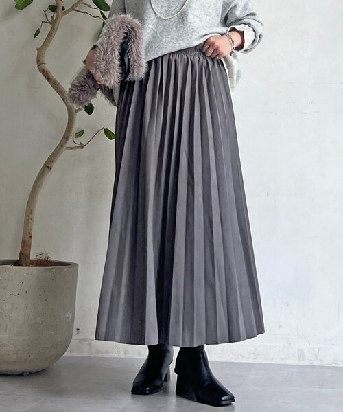 シーズンライクなスエード素材のキレイ見えスカート‐POINT‐・シーズンムードたっぷりなスエード素材のスカート・縦長に見せてくれる細かめのプリーツがキレイ見え◎・ウエストゴムで着脱ラクちん・大人の余裕を感じさせる、ほどよい広がり方がオシャレ※タグはMサイズ表記となっておりますが、フリーサイズの商品として販売しております。--------------------------------お手入れ:手洗い可透け感:なし裏地:なし伸縮性:なしポケット:なし光沢:なし生地感:普通--------------------------------【♡をクリックでお得な情報をお知らせいたします】〈商品のお気に入り登録〉お気に入りアイテムのお値下げ・再入荷・在庫ラスト1点など通知を受けることができます。〈ブランドのお気に入り登録〉Croisièreの新商品や再入荷、セール、クーポン配布などお得な情報を受けとることができます。--------------------------------※掲載商品のお色味は撮影場所やお使いのモニター環境により若干異なる場合がございます。特に、ロケ撮影では明るく見える傾向にございます。予めご了承ください。※生産の都合上、お届け時期が前後する場合がございます。※着用、お取り扱いの際は商品についている品質表示とアテンションタグを必ずご確認ください。