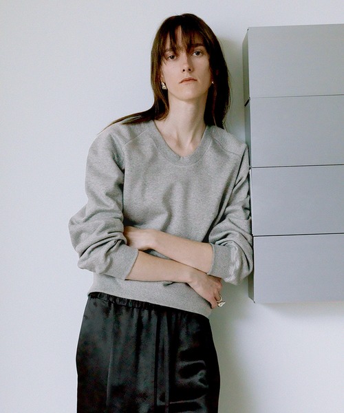 ◇26SS◇ADAM ET ROPE' EMOELLE【Material】コットン100%の裏毛素材。程度なハリと優しい光沢感を持たせた素材で、コンパクトですっきりとした表情が特徴。【Design】首元をすっきりと綺麗に見せてくれるネックラインと、肩のフォルムが特徴的なスウェットプルオーバー。着丈は長すぎない、絶妙なバランスの取りやすい丈感。接ぎ目はルーズロック仕立てにすることで、縫代がフラットになり肌あたりの良さが特徴。【Color】TOPグレーと大人な印象のカーキベージュの2色展開。【Styling Point】とろみのあるスラックスや、シンプルなワンピースの上にレイヤードするスタイルも素敵。---------------透け感:なし裏地:なし伸縮性:あり光沢感:ややあり生地の厚さ:中肉洗濯方法:手洗い---------------◇モデル情報詳細着用モデル:170cm size:F※撮影時の光、お使いのモニター環境によって色の見え方が違う場合がございます。