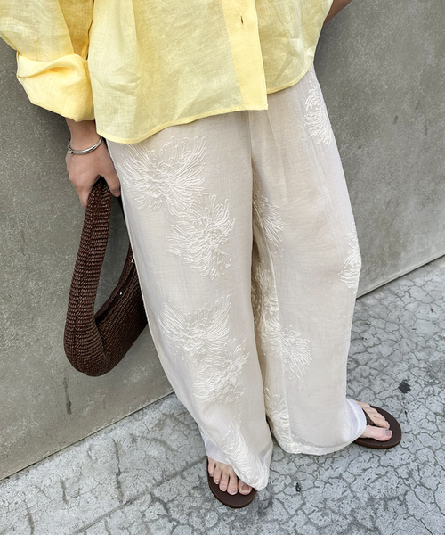 JOURNAL STANDARD人気のシアーレースレイヤードパンツ、新色が加わって再登場!※旧品番:26030400511010の追加商品です。※若干の仕様変更がある場合もございます。※旧品番は4月上旬頃に店舗に入荷予定です。在庫数等は店舗にお問い合わせ下さいませ。刺繍が目を惹くイージーパンツがお目見え。シアーな生地に花柄の刺繍が入ったイージーパンツに、薄手のサテンのイージーパンツがレイヤードされている2WAY仕様のパンツ。インナーパンツは内側のボタンで取り外し可能です。単品でも主役級のパンツですが、同素材のシャツとのセットアップもおすすめです!※同シリーズで下記品番もございます。シアーレースビッグシャツ(品番:26050400506010)**********************透け感:なし(インナーパンツあり)裏地:あり(インナーパンツ)伸縮性:なし光沢感:なし生地の厚さ:普通**********************【スタッフ着用コメント】《スタッフO》年齢:30代前半/身長:158cm/体型:普通/普段サイズ:M/着用サイズ:FREEサイズ感:程よいゆとりのワイドシルエット素材感:さらっとした素材着心地:ウエストゴム仕様で楽に穿けます。※あくまでも個人の感想です。**********************※カラーによって取り扱いが異なります。※取り扱いについては、商品についている品質表示でご確認ください。※照明の関係により、実際よりも色味が違って見える場合があります。またパソコン・スマートフォンなどの環境により、若干製品と画像のカラーが異なる場合もございます。※商品の色味は、商品アップ画像をご参照ください。ブラック着用スタッフH156 着用サイズFREEホワイト着用スタッフH158/156 着用サイズFREEベージュ着用スタッフH158 着用サイズFREE詳細撮影スタッフH162 着用サイズFREE本体:手洗い可能, インナーパンツ:手洗い可能