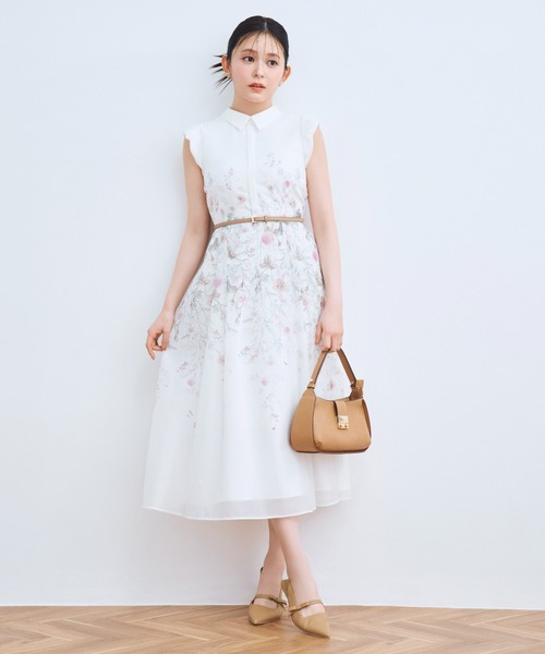 咲きこぼれるような花々を繊細な水彩画タッチで描いたオリジナルプリントのワンピース。トルコ桔梗や薔薇、ベルフラワーをモチーフに柄行きに高低差をつけて動きを出し、優雅で奥行きのある柄に仕上げました。織りを感じる透け感と程良くハリのある素材を選定し、シルエットを美しく見せます。袖はコンパクトなバルーンスリーブ。脇に三角マチを付ける事で肌が見えすぎないよう配慮したデザイン。袖以外は裏地が付いており、後ろコンシールファスナーあきです。ワンピースの色に合わせた別売りの細ベルトのカリグラフィーロゴチャーム付きスライドナローベルト(CWGG262505)もご用意しており、合わせることでより洗練されたコーディネートをお楽しみいただけます。【おすすめ骨格タイプ】■骨格ウェーブ透け感:なし裏地:あり伸縮性:なし光沢感:ややあり生地の厚さ:薄手※照明の関係により、実際よりも色味が違って見える場合があります。またパソコン・スマートフォンなどの環境により、若干製品と画像のカラーが異なる場合もございます。予めご了承ください。商品の色味は、商品単品画像をご参照下さい。 ※商品画像はサンプルのため、色味やサイズ等の仕様に変更がある場合がございますので、予めご了承ください。
