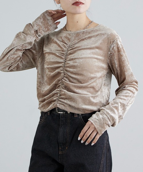 《 Lui's FEMME(ルイス ファム)オリジナル26SSコレクション 》フロントシャーリングベロアプルオーバー●デザイン・フロントに施されたシャーリングがアクセントのメッシュトップス。・単品でさらりと着こなしても、インナーとして重ね着しても表情豊かなスタイルを演出します。・透けすぎない絶妙な生地感で、シーズンを問わず幅広いシーンで活躍する一着。・インしてもアウトで着てもバランスの良い丈感。●スタイリング・カジュアルにもエレガントにもコーディネートできる万能アイテムです。・ジャケットやブルゾンのインナーに着こんでも着膨れせず、フロントのシャーリングデザインが存在感を発揮してくれます◎・ボトムを選ばず、デニム、スラックス、スカートどんなスタイリングにも合わせやすいです◎・ワンピースやオールインワンのインナーとしても重ね着も可能。**********************透け感:ややあり裏地:なし伸縮性:あり光沢感:あり生地の厚さ:普通**********************【ブランド】Lui's FEMME(ルイス ファム)凛とした芯のある女性。 自立した、女性のワードローブをイメージ。洗練されたかっこよさの中に、女性らしさ・かわいさ・セクシーさを持つ。自分自身のスタイル(自分らしさ・個性・生き方・感覚...)を表現できるひとつの手段としての服。肩肘張らない、心地よいリラックス感のあるスタイルを上質な素材、優雅なシルエットで提案。 《商品画像について》ご覧頂いている商品の写真につきましては、できるだけ実物の色に近くなるように努めておりますが、お使いの環境(モニター、ブラウザ等)の違いにより、色の見え方が実物と若干異なる場合がございます。 予めご了承ください。《予約商品について》・こちらの商品はサンプルでの撮影・計測となっております。実際の商品とは、商品の一部仕様が変更になる場合がございます。・撮影サンプル品はブランドタグがついておりません。製品にはタグがつきますので、製品の表に縫い糸が見えたり、着用時にタグが透ける場合がございます。・サンプルの為、混率の詳細が確定しておりません。確定次第、記載いたします。・工場の生産の都合上、納期が変更になる場合がございます。発送日の前後についてはあらかじめご了承ください。・入荷状況により、お客様への発送が店頭販売より遅れる場合もございます。・店頭に陳列していた商品も含まれる場合がございます。《ハートをタップして商品のお気に入り登録》登録カラーの商品の「残りわずか」「再入荷」「値下げ」通知を受け取ることができます。各ショップアプリにてブランドフォロー 新商品などの入荷情報、最新のニュースやお得な情報を受け取ることができます。