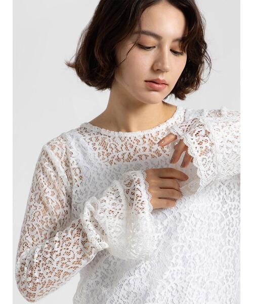 立体的で繊細なコードレースを使用した存在感のあるデザイントップス。程よく透け感のある素材と、袖口と裾の別々のスカラップレース切替のフレアスリーブが、動くたびに軽やかさと女性らしさを演出。1枚で着用するのはもちろん、ニットやジャケットとレイヤードする事で様々なコーディネートが楽しめます。1枚持っているだけで今年らしいスタイリングに。デニムでカジュアルダウンしても、スカートと合わせてきれいめにも着こなせる、コーデの主役になる一枚です。※商品画像は、撮影環境やお客様のご利用のPC・スマートフォンのモニター環境などにより実物と色味に差異がある場合がございます。