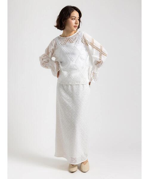 春らしい軽やかさを纏うパネルレースのナロースカート。繊細なパネル柄レースは可愛くなり過ぎず、落ち着いた大人の抜け感を演出してくれます。バックウエストはゴム仕様で快適な履き心地。オフのみの色展開で、綺麗めにもカジュアルなスタイリングにも合わせやすい万能アイテムです。同素材のブラウス(2701525-12-12 パネルレースカシュクールブラウス)とセットアップで着てワンピース風にも着用出来ます。【その他採寸】F ウエスト:[後ゴム仕様]64cm ※商品画像は、撮影環境やお客様のご利用のPC・スマートフォンのモニター環境などにより実物と色味に差異がある場合がございます。★《お気に入り登録》でお得な情報をGET★① 商品ページ内のハートマークをクリック!② 以下通知が受け取れます!「再入荷」「ラスト1点」「特別セール」etc..\ブランド、ショップのお気に入りも是非!/