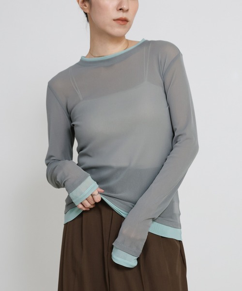 -point- & -styling-悩まず完成する、レイヤードスタイル軽やかなメッシュ素材のシアートップスが登場。MOCAらしい色合わせで1枚でも華やかな印象に。様々なスタイリングに合わせやすデザインで、何色も欲しくなるベーシックアイテム。肌触りが柔らかく、伸縮性があるのでストレスフリーな快適な着心地で1枚ではもちろん、ジャケットやシャツのインナーとしてもおすすめです。フェイクレイヤードクルーネックカラーシアーカットソー----------------------------素材 ナイロン100%----------------------------伸縮性 ★★★☆☆裏地 なし----------------------------※モニター・環境等により実際の商品と多少色味が異なって表示される場合がございます。 予めご了承をお願いいたします。=======================■袋梱包の為、染料による特有の匂いが抜けきれず、匂いがする場合がございますが不良品にはあたりません。 上記注意点での返品、交換はお断りします。ご了承の上お買い求めくださいませ。■本製品は生産過程におきまして色味、サイズ感等若干の誤差が出る場合がございます。予めご了承くださいませ。=======================【お買いものをお楽しみいただく為に!】▼商品のお気に入り登録完売カラーの再入荷通知や、ラスト1点の通知、セールの通知も受け取ることができます。▼ブランドのお気に入り登録新商品や再入荷など、いち早くブランドのお得な情報を受け取ることができます!