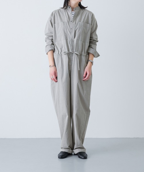 ナチュラルな雰囲気が大人好みなアイテム 簡単にコーディネートが完成するオールインワン。ゆとりがあるサイズ感で体の線を拾いにくいのも嬉しいポイント。アクセサリーや小物が映えるシンプルなデザインは、お出かけ気分を高めます。少し釦を開けて着用すると抜け感が増した装いに。ウエストの紐でブラウジングしたり、裾をロールアップすれば着丈の調節も可能です。 【FABRIC】 ・風合いが豊かで上品な佇まいのコットン ・ハリを残しつつも柔らかな肌あたり 【POINT】 ・リラクシーな着心地 ・これ1枚でこなれ感のあるスタイルに 【2026 Spring/Summer】【26SS】 総重量 : 約360g ※商品画像は、光の当たり具合やパソコンなどの閲覧環境により、実際の色味と異なって見える場合がございます。予めご了承ください。 ※商品の色味の目安は、商品単体の画像をご参照ください。 ▼お気に入り登録のおすすめ▼ お気に入り登録された商品は、マイページにて現在の価格情報や在庫状況の確認が可能です。 お買い物リストの管理にぜひご利用ください。