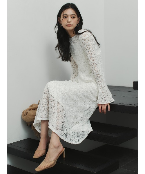ラグジュアリーな凹凸感が魅力のシュリンクレースワンピース ■ Design 程よくボディにフィットするセミマーメイドシルエットが、エレガントで女性らしい印象を演出。 袖口にはあえて少し長めのベルカフスをあしらい、手元を華奢に見せてくれます。 インナーが見えにくいよう設計された程よい開きのバックスタイルで、さりげなく抜け感をプラス。 同色のカットソーベチコート付きで、透けを気にせず美しいシルエットをお楽しみいただけます。 ■ Fabric ラグジュアリーな凹凸感が魅力のシュリンクレースを使用。 甘さを抑えたアブストラクトなフラワーパターンと、抜け感のあるメッシュベースのフラワーモチーフ——2種類のレースを掛け合わせ、繊細なコントラストを表現しました。 しっかりとストレッチ性のある素材で、きちんと感を保ちながらもストレスフリーな着心地を叶えます。 ■ Coordinate コンパクトなサイジングなのでジャケットなどの羽織りの中にも綺麗にご着用いただけます。 袖丈はやや長めに設定しているので、ジャケットの袖口からレースを覗かせたスタイリングもおすすめです。 =================================== 裏地:なし(全色ペチコート付き) 透け感:あり 光沢感:なし 伸縮:あり ケア方法:手洗い ※インナーぺチコート:マシンウォッシュ =================================== 【注意事項】 こちらの商品はストレッチ性のあるレース素材の為、ハンガーにかけたまま保管されますと自重により生地が伸びる恐れがございます。 保管の際は、たたんで平らに置いていただくことを推奨いたします。