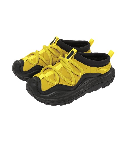 <オラ プリモ> The Rundown 休息時も、より快適に。 ORAシリーズのランニング後の足を癒やすためのリカバリー機能を継承し、未来的なシルエットにデザインされたORA PRIMO(オラ プリモ)。 ソフトなニットカラー、ストレッチレースシステム、中綿入りアッパーを採用し、季節を問わないスリッポンで快適な履き心地を追求しています。 *履き口が小さいため、甲の高さが懸念される場合はハーフサイズ、ワンサイズアップをお勧めします。 ※ 使用注意事項:ランニング後のリカバリー、リラックス時の着用を目的とした商品です。ランニングなどの運動時の着用は推奨しません。 ※ 素材の特徴上、炎天下や直射日光の当たる場所、高温多湿の場所での放置は避けていただくことをお勧めします。変形や変色する恐れがあり、機能の低下の原因となります。 用途 ・リカバリー ・ライフスタイル 特徴 【アッパー】 ・中綿入りアッパー ・ニットカラー ・ジグザグステッチディテール ・ストレッチレースシステム ・つま先を保護するトゥバンパー ・反射素材バードロゴブランディング ・バンプとヒールウェビングにジグザグステッチ ・レースループの反射素材HOKAブランディング ・ヒールウェビングに反射素材 【アウトソール】 ・30%リサイクルラバーアウトソール 製品スペック オフセット:6.00 mm スタビリティ:ニュートラル 最小限のサポート機能でクッション性を重視しています クッション性 :柔らかい 柔らかくてボリュームのあるクッション。