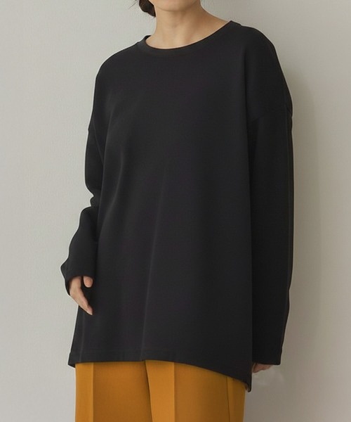 リップルダブルフェイスシルエットプルオーバー ボックスシルエット 裾スリット ストレスフリー トップス カジュアル レディース プルオーバー ミドル丈 春 秋 冬 あたたかい きれいめ かわいい ゆったり
