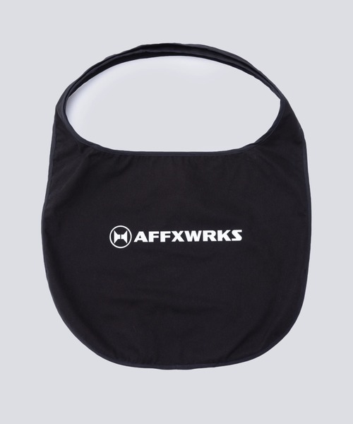 AFFIXフラットな円形構造の15オンスの起毛コットンドリルを使用したオープンショルダーバッグ 。ミッドウェイト循環型建設トーナルバインディング反射性AFFXWRKSプリント綿100%ポルトガル製日本のユニフォームやワークウェアをベースに、 “New utility” = “新しい活用性”を提言するロンドン発ブランド。スタイリスト/クリエイティブ・コンサルタントのStephen Mann、自身の名を冠したブランドを持つKiko Kostadinov、Mackintosh 0001のヘッド・デザイナーTaro Smith、Gimme FiveファウンダーのMichael Kopelmanというファッションに造形の深い4名によるコラボレーションプロジェクトです。