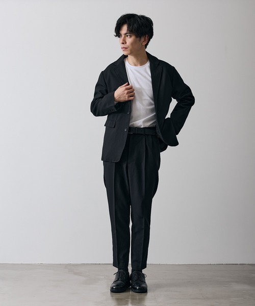 「ゆるく着る」が今っぽい。オーバーサイズのジャケットとスラックスがセットになった、旬なリラックスフィットのセットアップが登場。 ●ポリエステル100%の素材を使用し、軽量でストレスフリーな着用感を実現 ●シワになりにくく、自宅でのお手入れも簡単で、デイリーユースに最適 ●堅苦しくなりすぎない、程よいゆとりを持たせたドロップショルダーとワイドシルエットのジャケット ●テーパードシルエット、タックウエスト、ゴムウエストなイージーパンツ 上下別々でも着回しやすく、Tシャツやニット、革靴やスニーカーなど、合わせるアイテム次第でカジュアルからきれいめまで幅広いスタイリングが楽しめます。 このセットアップは、オフィスカジュアルからタウンユース、ちょっとした旅行やデートまで、幅広いシーンで活躍します。是非、あなたらしい着こなしを見つけてください。