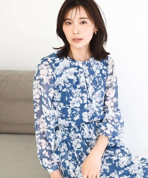 コーディネートに映える花柄ブラウス ■デザイン 線画タッチの繊細なフラワーモチーフプリントのブラウス。タックをあしらったクルーネックが上品な印象に着こなせます。 ■素材 さらりとしたシフォン素材はシワになりにくく、お洗濯もラクチン。身頃の裏地にはサテンスムース重ねてあるので透けの心配もありません。 ■コーディネート 総柄ながら落ち着いた色合いは大人っぽい雰囲気に。同素材のスカートとセットアップでワンピース見えに着こなしても素敵に。カーディガンやジャケットのインナーにもすっきりと決まります。 -------------------- 着用シーズン 春:◎ 夏:△ 秋:◎ 冬:○ -------------------- 洗濯表示:洗濯機洗い可 透け感:あり 裏地:あり 伸縮性:なし 生地の厚さ:薄手 --------------------#柄ブラウス #オフィス #フォーマル #食事会 ※自然光・照明の関係、パソコン・スマートフォンなどの環境により、実際と色味が違って見える場合がございます。予めご了承ください。商品の色味は、詳細画像をご参照ください。 ※サンプルでの撮影となるため、実際にお届けする商品と仕様やサイズが異なる場合がございます。