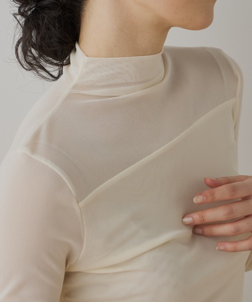 ボトルネックデザインがポイント春インナーにオススメなシアーカットソー■point・ニットからのぞかせて、ワンピースのインナーに、様々な着こなしが可能・切り替えデザインがアクセントに・伸縮性があるので着心地抜群■fabricナイロン100%■size身幅:38cm肩幅:39.5cm総丈:57cm袖丈:59cm……………………透け感 : あり厚さ:薄手伸縮性:ありお手入れ方法手洗い 〇濃色は色移りの可能性がありますので、単独洗いをしてください。濡れた状態での長時間放置や浸け置き洗いは染料が流出し色にじみの原因になります。お洗濯のあとは放置せず水気を含んだ状態で形を整えて干してください。乾燥の際は直射日光を受けると変色する恐れがありますので陰干しをしてください。濃色アイテムについては淡色とのコーディネートは避けていただき、乾いた状態でも強い摩擦にはご注意ください。詳しくは付属の「お取り扱い上のご注意」をご確認ください。……………………※ご注意※・屋外の光や照明の当たり具合で、実際の商品の色味とカラー別画像の色味に若干の違いが発生する場合がございます。・詳細画像と併せてご確認の上、ご注文いただきますようお願い致します。【 Libra Cue 】“包み込むような気持ちよさを” 快適で豊かな生活を送りたいそんな暮らしの”きっかけ”となるデイリーウェアをご提案します【 商品のお気に入り登録 】完売カラーの再入荷通知やラスト1点の通知プライスダウンの通知も受け取ることができます。【 ブランドのお気に入り登録 】新商品や再入荷など、ブランドの情報をいち早くお知らせします。※ご注文いただいた予約商品のお届け時期確認は、注文履歴ページより行えます。
