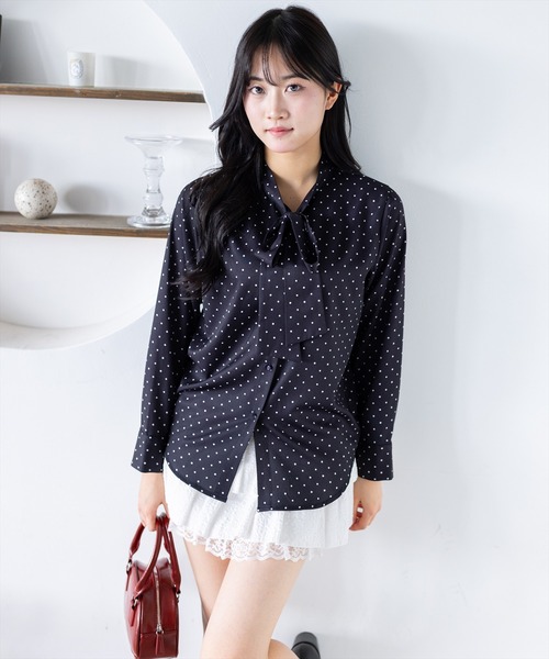 きれいめコーデに欠かせない!マルチアソートボウタイリボンブラウス【デザイン】フロントのボウタイリボンが女性らしさを演出するブラウスです。ドット柄と無地のアソート展開で、華やかさのある印象から落ち着いた雰囲気まで選べるのがポイント。落ち感のあるシルエットで甘くなりすぎず、オンオフ問わず取り入れやすい一枚です。【素材感】着心地の軽いポリエステル素材伸縮性:なし/ 透け感:OWH・IVDT若干あり/ 裏地:なし 手洗いによる洗濯可 / ドライ・ウェットクリーニング可【コーディネート】テーパードパンツやセンタープレスパンツと合わせれば、上品なオフィスカジュアルスタイルが完成します。ジャケットやカーディガンのインナーとしても使いやすく、通勤コーデにおすすめです!【※お取り扱い上のご注意】1:モニター環境等により実際の商品と多少色味が異なって表示される場合がございます。予めご了承下さい。2:屋外で撮影された商品は、天候により多少実際のカラーと異なる場合があります。商品のカラーはトルソー(マネキン)の商品画像をご参照ください。3:濃い色の商品は、お洗濯や摩擦等による移染にご注意ください。4:末永くご愛用頂く為に、アテンションタグ・洗濯ネームを必ずご確認の上、着用又はお取り扱い下さい。5:生産時期により、色、サイズ、デザイン、素材の質感が多少が異なる場合がございます。あらかじめ御了承下さいませ。