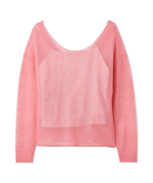 【2WAYで着られる! 春気分先取りのベビーアルパカニットプルオーバー】【Design/Styling】毛質が細くて柔らかな上質ベビーアルパカの糸を使用してお作りしたニットプルオーバーです。春らしいカラーリングでそろいました。深めのボードネックに程よくドレープ感を加えた襟ぐりと、すっきりとした広めのV開きと、前後2WAYでご着用いただけます。ふわっとした温かみのある素材ですが、甘編みで仕立ててシアー感を出しているので、まだ寒い時期から春先までロングスパンで活用いただけます。シアー感がありますが艶感のあるサテン生地のインナーキャミソール付きなので安心。キャミソールの肩紐は細ゴムでスタイリングを邪魔しない仕様です。【Fabric】クリーンな印象のオフホワイト、杢調の柔らかなグレー、鮮やかな色味のピンク、優しい色味のライトブルーの4色展開です。シアー感のある柔らかなニット生地はウール・アルパカ混の糸でふんわりとしています。インナーは同系色のサテン生地を使用しています。透け感;ややあり裏地;インナー付属伸縮性;ややあり光沢感;なし生地の厚さ;やや薄手※照明の関係により、実際よりも色味が違って見える場合があります。またパソコン・スマートフォンなどの環境により、若干製品と画像のカラーが異なる場合もございます。予めご了承ください。商品の色味は、商品単品画像をご参照下さい。 ※商品画像はサンプルのため、色味やサイズ等の仕様に変更がある場合がございますので、予めご了承ください。