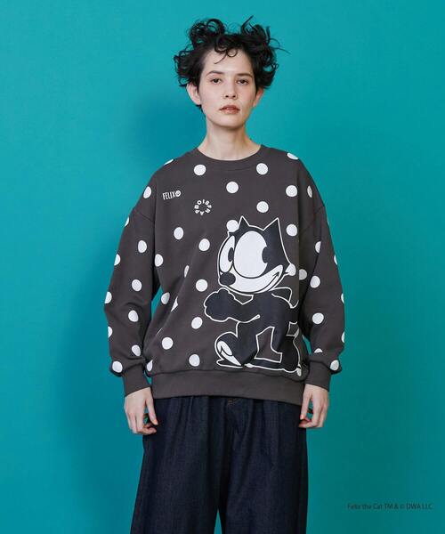 世界で最も有名な黒猫「フィリックス・ザ・キャット」は1919年映画の主人公として誕生し、日本では1980年代に一大ブームを起こしました。 コミックスやアニメーション、そして商品を通じ、彼の名前の由来である「フェリシアス=幸運を招くネコ」として、どんな状況にあっても諦めない不屈の精神と、周囲への大いなる優しさを発揮し、世界中で活躍し続けています。 2024年に105周年を迎えました。 【素材】 程よい厚みのあるスウェット素材を使用し、衿、袖口、裾にテレコを使用しました。 【デザイン】 チャコールグレーのスウェットに「フィリックス」のロゴや顔のシルエット、フラボアの円ロゴ入りのオリジナルドット柄プリントを施し、前身頃に「フィリックス」の全身プリントを入れたデザインです。 後ろ身頃にはフラボアと「フィリックス」のコラボロゴが、身生地同色系の黒プリントでさりげなく入っています。 左脇にはフラボアピスネーム付き。 *こちらの商品はユニセックス商品です。 洗濯表示 洗濯:液温は40℃を限度とし、洗濯機で弱い洗濯処理ができる 漂白:漂白処理はできない タンブル乾燥:洗濯処理後のタンブル乾燥処理はできない 自然乾燥:日陰でのつり干し乾燥がよい アイロン:底面温度160℃を限度としてアイロン仕上げ処理ができる ドライクリーニング:ドライクリーニング処理ができない ウエットクリーニング:ウエットクリーニング処理ができる(通常の処理) 【ブランド情報】 FRAPBOIS/フラボア 2001年にブランドスタート。 「大人げない大人の服」をコンセプトに、大人が着るリラックスしたデイリーウェアを提案するコレクションブランド。 レディースとメンズのアイテムをご用意しています。 ---------------------------------------------------------------------- 【お気に入り登録】がおすすめです。 ■商品のお気に入り登録 再入荷、残り1点、セールなどの通知を受け取ることができます。 →商品ページ ♡ をクリック ■ショップのお気に入り登録 新商品や再入荷、セール、クーポン配布、ショップニュースなど、いち早くショップの情報を受け取ることができます。 →「♡お気に入りショップに追加」 をクリック ----------------------------------------------------------------------