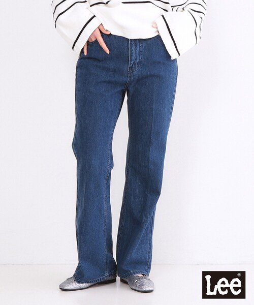 【Lee別注】フレアデニムパンツ【デザイン】・Leeで定番人気のシルエットを参考に別注した美シルエットのフレアデニムパンツ。・ひざ下から緩やかなフレアシルエットとセンタープレスで脚長見えのデニムパンツ。・やや深めの股上で、腰回りからヒップにかけてきれいに見せてくれます。・どんなスタインリングにもバランス良く合わせられるデニムパンツです。・同素材でお作りしているウエスタンシャツジャケット(F37-45001)とセットアップでの着用もおすすめです。【素材/カラー】・オールシーズン定番で着れる12OZ(オンス)の綿デニム素材を使用。・中濃色のフェイドデニム(093)とワンウオッシュデニム(094)の2色展開。・シーズン問わず大人っぽく着れるカラーリング。・マシンウォッシャブル【仕様】・ポケット数:横×2 後×2・裏地なし【注意事項】※この商品は、汗や雨などで湿った状態や摩擦により色移りすることがあります。※この商品は、日光や照明を長時間受けますと変色の恐れがあります。ご着用および保管の際はご注意下さい。保管の際も日の当たらない場所で保管して下さい。■サイズ表示について※バイイング商品のため下げ札サイズ表記とワールドサイズ表記が異なります。製品寸法をご確認くださいませ。ワールドサイズコード02=製品サイズ表記Mワールドサイズコード03=製品サイズ表記L※照明の関係により、実際よりも色味が違って見える場合があります。また、パソコン・スマートフォンなどの環境により、若干製品と画像のカラーが異なる場合もございます。モデル情報:身長165cm B72 W57 H84 着用サイズ:02店舗へのお問い合わせ商品番号:F37-65001●製品寸法:02:W70cm H84cm 股下69cm 前股上28cm 渡り幅26cm 裾幅25cm03:W72cm H88cm 股下71cm 前股上29cm 渡り幅28cm 裾幅25cm備考:
