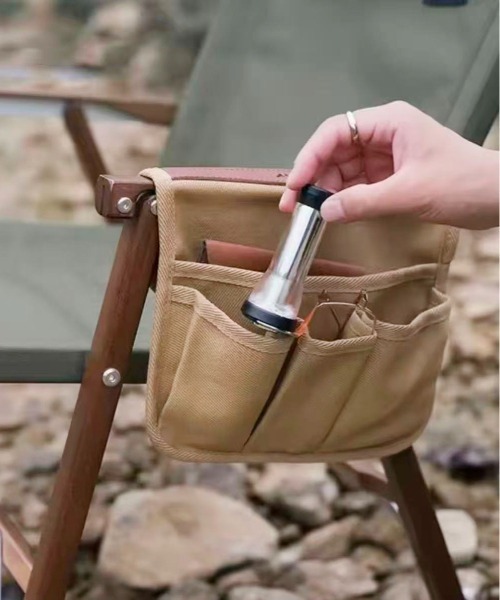 【 Port / ポート 】 アウトドア チェアポケット / 吊り下げ収納ポーチ # ■アイテム説明 キャンプやピクニック、ベランダ時間など、屋外での時間をもっと快適に。 チェアの背面に取り付けるだけで、小物やツールをすっきり収納できる吊り下げ型のマルチポケットです。 2つの大容量ポケットと横幅いっぱいのロングポケットを装備し、スマートフォンやカトラリー、ランタン、虫除けスプレーなどをまとめて持ち運びやすく整理。 厚手のキャンバス素材で耐久性もあり、無骨でアウトドアに馴染むカラー(ブラック・カーキ・サンド)を揃えました。 使わないときはコンパクトに畳んで収納可能。 自然の中での快適なひとときをサポートしてくれる、頼れるアイテムです。 ■サイズ展開 FREE …………… 透け感:なし 伸縮性:なし 裏地:あり ポケット:あり …………… ※撮影・モニター環境等により実際の商品の色味と異なって見える場合がございます。 〈商品のお気に入り登録〉 お気に入りの登録をして頂きますと セールの通知・ラスト1点になった時の通知や、再入荷通知を受けることができます。 〈ブランドのお気に入り登録〉 新商品の発売や再入荷、タイムセールやクーポン発行のお知らせなど お得な情報を受け取ることができます。