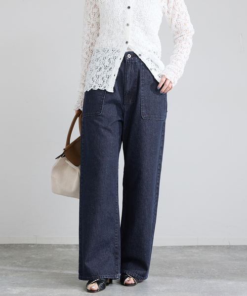 【2026SS】IENAワークテイストのベイカーパンツを、11ozのナチュラルなデニムを使用することでIENAらしくクリーンに仕上げたデニムパンツ。フロントの大きめポケットがさりげないアクセントになりつつ、腰まわりはすっきりと、脚のラインをまっすぐきれいに見せてくれるシルエットが魅力です。ウエストは腰穿きできるようなシルエットに仕上げています。程よく厚みのあるコットン100%のデニム素材で、カジュアルになりすぎず上品な印象に。Tシャツやニット合わせはもちろん、レースやブラウスなどフェミニンなトップスとも好相性で、幅広いスタイリングにマッチします。ナチュラルはワンウォッシュ加工でクリーンな印象に、ブルーAはバイオウォッシュ加工の程よい色落ち感でこなれた印象に。シーズンレスで活躍し、ご自宅で洗えるデイリー使いしやすい一本です。**********************透け感:なし裏地:なし伸縮性:なし光沢感:なし生地の厚さ:普通**********************※こちらの商品はカラーによってお取り扱い表示が異なります。【ナチュラル(016)】・製品洗い微妙な色差、風合い、サイズの違いがあります。【ブルーA(045)】・特殊加工この製品はナチュラルな風合いをお楽しみいただけるよう、特殊な加工を施しています。そのため、一点一点に微妙な色、サイズ、風合いなどの違いがあります。 ・インディゴ染め製品 染料の性質上、着用や洗濯により色落ちし、白っぽくなります。スレによる色落ち、色移りにご注意ください。※取り扱いについては、商品についている品質表示でご確認ください。※こちらの商品は、IENAでの取り扱いになります。直接店舗へお問い合わせの際はIENA店舗へお願い致します。※照明の関係により、実際よりも色味が違って見える場合があります。またパソコン・スマートフォンなどの環境により、若干製品と画像のカラーが異なる場合もございます。予めご了承ください。※商品の色味は、商品アップ画像をご参照ください。本体:洗濯機洗い(弱)
