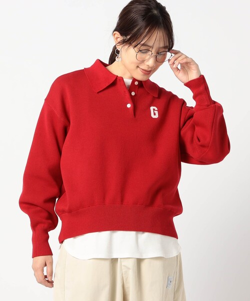 Gロゴ スエットライク ポロニットポロ襟とカジュアル見えするスエットライクなニット素材を組み合わせた、絶妙なバランスのポロニットです。胸に入った「G」の刺繍ロゴがデザインポイントです。柔らかくて肌触りが良く程よい厚みなので、着心地が抜群です。ドロップショルダーとワイド幅なので、着用するだけでこなれ感が出ます。■point大人カジュアルなベイカーやデニムパンツとの相性が抜群です。レッド・グレー・アイボリーと、違った雰囲気を楽しめる3色展開です。スエットライクなカジュアル見えする ライトニットなので、秋から春まで長いシーズン活躍します。ラフに襟元の釦を外すと、顔まわりがすっきりとした印象になります。■detail*胸に「G」の配色刺繍ロゴあり*シャツ衿*ドロップショルダー■fabric……………………透け感:なし裏地:なし伸縮性:あり光沢感:なし生地の厚さ:やや肉感あり洗濯方法:手洗い可能……………………※詳しいお手入れ方法は商品タグをご参照ください■coordinate*シャツや、カットソーを裾出してレイヤードを楽しめます。*1枚で主役としてパンツやスカートと合わせてもバランス良く着用できます。 ※画像の商品はサンプルです。実際の商品とは仕様・加工・サイズ・素材が若干異なる場合がございます。※ 掲載画像の商品の色味は、 撮影場所や光の当たり具合などにより色味が異なって見える場合がございます。商品の色味は、生地アップの画像をご参照ください。また、お客様のお使いのPC・スマートフォン等のモニター環境などにより色味が異なって見える場合がございます。予めご了承の上ご注文ください。