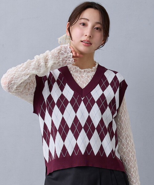 大人気アーガイルベストから新色が登場。ほどよくゆとりのあるサイズ感ですが、丈感にこだわりダボッとし過ぎず女性らしく着て頂けるのがポイントです。ブラウスやワンピース、Tシャツなど、インナーを選ばずに着用できるサイズ感が嬉しい。透け感のない、しっかりと編み込まれたジャガード生地で、トレンドなカラーリングに仕上げました。※着用モデル身長164cm※掲載画像の商品の色味は、 撮影場所や光の当たり具合などにより色味が異なって見える場合がございます。商品の色味は、生地アップの画像をご参照ください。また、お客様のお使いのPC・スマートフォン等のモニター環境などにより色味が異なって見える場合がございます。予めご了承の上ご注文ください。☆★お買い物をお楽しみいただく為に★☆★商品のお気に入り登録完売カラーの再入荷通知や、ラスト1点の通知、セールの通知も受け取ることができます。★ブランドのお気に入り登録新商品や再入荷等、ブランドのお得な情報をいち早く受け取ることができます。