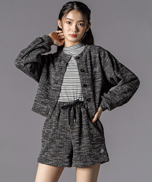 -26SS-シンプルなのに映える!刺しゅうが主役のきれいめセットアップ。■デザインカーディガンとショートパンツのセットアップは、バランス感が絶妙な“オトナかわいい”スタイル。さりげない胸元と裾の刺しゅうが、リンクデザインで今っぽく統一感を出してくれる。カラーはブラックとグレー、どちらも秋冬らしいメランジ調の深みカラーで、韓国っぽモードにもガーリーにもハマる仕上がり。ゆるめのトップス×すっきりボトムの組み合わせでスタイルアップも叶う。■素材/機能ニットソーの柔らかな風合いで、動きやすくストレスフリーな着心地。ポリエステル混素材だからシワになりにくく、お手入れも簡単。ボトムには裏地付きで暖かく、ウエストはゴム+サイドリボンでサイズ調整も◎。通学にもおでかけにも万能な、秋冬大本命のセットアップ。※ボトム:ゴム入り。両脇の紐でウエスト調節可能です。※両脇ポケット付きです。26春夏アイテム【ZIDDY(ジディー)】~teen Lady~レディーストレンドを取り入れたクールでちょっぴり上品なスタイルを提案。