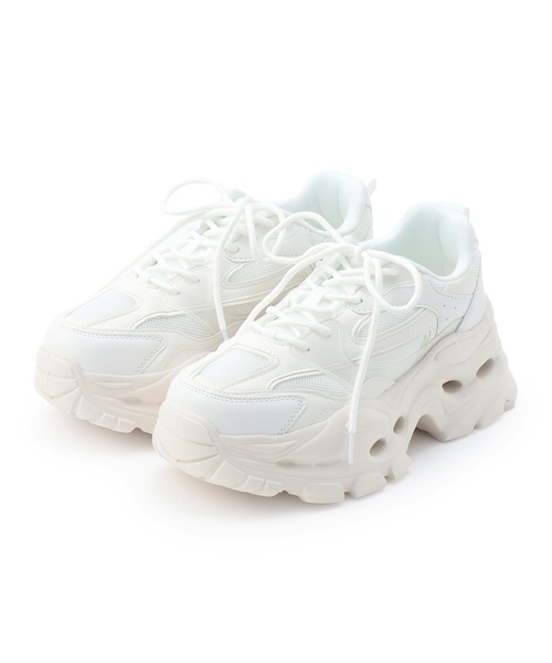 シンプルなデザインでデイリーに活躍するダッドスニーカーです。 スタイルアップが叶う圧底のソールに、軽さとクッション性を持たせました。 モノトーンのワンカラーなのでどんなコーデとも好相性。 メッシュ部分がスタイリングに抜け感をプラスし、カジュアルな印象に仕上げます。 ≪重さ≫M/片足約326g 【透け感】透けない 【生地の厚さ】普通 【伸縮性】なし 【裏地】なし 【ポケット】なし 【アジャスター】なし