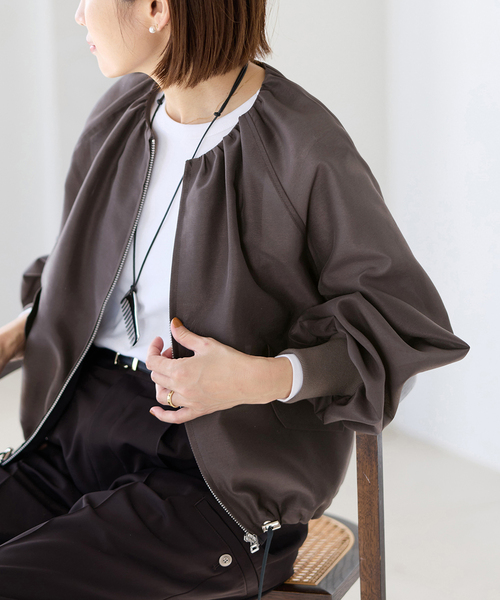 【2026SS】IENA※こちらの商品は、品番:25011900502010・25011900502110の追加品番です。※ネイビーのみWEB限定追加になります。店舗への入荷予定はございません。※若干の仕様変更がある場合がございます。リクエストにお応えして追加生産が決定!グレーは新色、ネイビーはWEB限定カラーです。丸みのあるシルエットが女性らしいシアーブルゾン。程よいシアー感と仕立て映えするハリ感がポイントのオーガンジー素材を使用しました。襟周りと袖口にはギャザーを入れ、立体的なフォルムに仕上げています。裾にはドロストが付いているので、合わせるボトムによってシルエットを変えていただくのがおすすめ。後ろの着丈を長くすることでパンツでもスカートでもスタイリングしやすいバランスにこだわりました。ご自宅で手洗いができるのも嬉しいポイント。春先の羽織としてはもちろん、梅雨の肌寒い時期や夏の冷房対策など幅広いシーンで大活躍するアイテムです。**********************透け感:ややあり裏地:なし伸縮性:なし光沢感:ややあり生地の厚さ:普通**********************※取り扱いについては、商品についている品質表示でご確認ください。※こちらの商品は、IENAでの取り扱いになります。直接店舗へお問い合わせの際はIENA店舗へお願い致します。※照明の関係により、実際よりも色味が違って見える場合があります。またパソコン・スマートフォンなどの環境により、若干製品と画像のカラーが異なる場合もございます。予めご了承ください。※商品の色味は、商品アップ画像をご参照ください。本体:手洗い可能