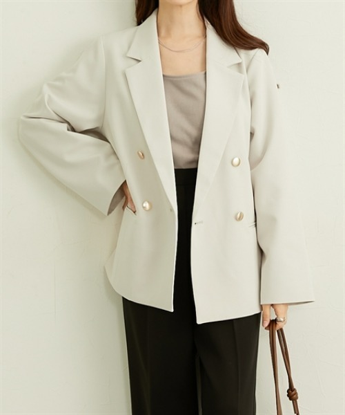 <仕様>[表地]ポリエステル90%・ポリウレタン10%<洗濯方法>手洗い■キーワード20代、30代、40代、きれいめカジュアル、きれかじ、アウター、オフィスカジュアル、キレカジ、ジャケット、ファッション、レディース、大人、大人カジュアル、春、通勤カジュアル