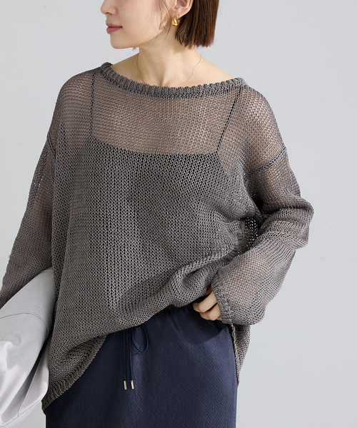 【2026SS】IENAドライタッチで清涼感のあるギマ加工コットンを使用した、軽やかな着心地のプルオーバー。ざっくりとした編み立てが程よい透け感と表情を生み、シンプルながらもニュアンスのある一枚に仕上げています。身頃は前後差のないすっきりとした着丈で、裾は直線的なラインに。首元・袖口・裾にはリブ編みを施し、全体を引き締めつつ着用時の安定感も高めています。程よくゆとりのあるシルエットで、リラックス感がありながらもカジュアルになりすぎないバランスが魅力です。インナーとのレイヤードが楽しめるデザインで、タンクトップやキャミソールを合わせればヘルシーに、カットソーを重ねれば季節の変わり目にも活躍。パンツにもスカートにも合わせやすく、春夏は一枚で、秋口にはジャケットのインナーとしても着回せる、長く活躍するベーシックニットです。**********************透け感:あり裏地:なし伸縮性:あり光沢感:なし生地の厚さ:普通**********************※取り扱いについては、商品についている品質表示でご確認ください。※こちらの商品は、IENAでの取り扱いになります。直接店舗へお問い合わせの際はIENA店舗へお願い致します。※照明の関係により、実際よりも色味が違って見える場合があります。またパソコン・スマートフォンなどの環境により、若干製品と画像のカラーが異なる場合もございます。予めご了承ください。※商品の色味は、商品アップ画像をご参照ください。本体:手洗い可能