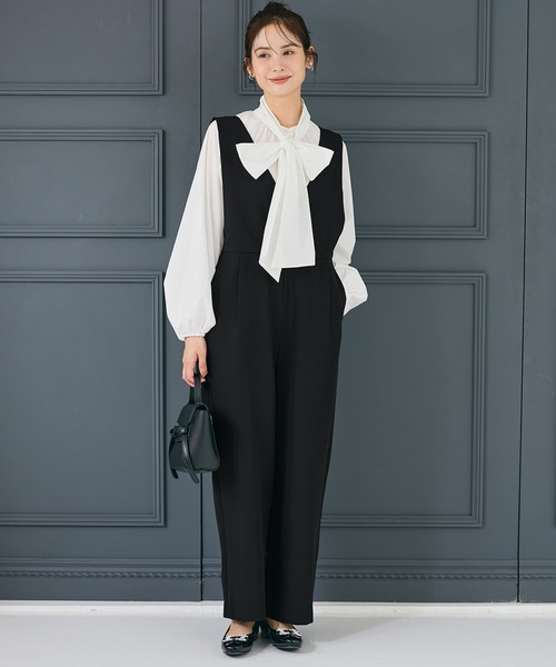 深めVネックがすっきりとした印象を与える、大人のオールインワン■デザイン・シルエットデコルテラインを美しく見せる深めのVネックデザインがポイント。着用時はインナーを合わせることで、安心感があり上品な着こなしに。程よくゆとりのあるシルエットで、体のラインを拾いすぎず、すっきりとした印象に仕上がります。■素材・程よいハリ感で、きれいなシルエットをキープ・シワになりにくく、お手入れしやすい素材■コーディネートカットソーやブラウスなど、シンプルなインナー合わせがおすすめ。シューズや小物次第で、きれいめにもカジュアルにも対応でき、幅広いシーンで活躍。伸縮性:なし透け感:なし裏地:一部ありポケット:あり生地感:さらりとした柔らかい生地注意点:お洗濯方法によっては縮みや色あせの可能性あり。乾燥機等のご使用はお控え下さい。▼生地や素材の性質により2cm前後サイズ誤差が出る場合がございます。▼モデル着用写真は撮影環境により、多少実際のカラーと異なる場合がございます。▼色落ちの恐れがありますので、他のものと分けて洗って下さい。▼当商品は機械による生産の過程上、『生地を織る際の糸の継ぎ目』や多少の『ほつれ』、繊維の『混紡』、形やサイズに多少の『誤差』が生じる場合がございます。オールインワン サロペット Vネック パンツ ロング丈 後ろファスナー ポケット 無地 シンプル きれいめ カジュアル 26ss コカ COCA coca COCA coca