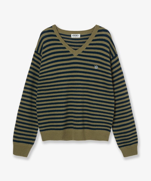大きめのVネックで首元をすっきり見せるニットプルオーバー。 胸元のさりげないワンポイントが、シンプルながらもかわいらしいアクセントに。 コントラストの効いた2色のストライプが目を引き、コーディネートの主役として活躍します。 新作&最新情報はここからチェック! Instagram →【@aeae_japan】 ----------------------------------------------- aeae(エーイーエーイー)は、“今”というトレンドを独自の感性で解釈し、日常にそっと寄り添うような小さなときめきを提案するブランドです。 固定されたテーマにとらわれず、その時々の空気感やムードをaeaeらしい視点で表現。 多様なカルチャーを自由に取り入れながら、ファッションをもっと楽しく、もっと自由に感じていただけるようなアイテムを展開しています。 aeaeが、皆さまの毎日に小さな彩りを添えられますように。 ----------------------------------------------- [NOTICE] ・アテンションタグや洗濯表示を必ずご確認の上、ご使用下さい。 ・素材の特性上、他の物との摩擦によりピリング(毛玉)が生じることが有ります。 ・プリント部分は、長期間の使用や摩擦により、徐々に剥がれや欠損が生じます。 ・ご覧のモニター環境や撮影環境により、実物の商品と多少色味が異なって見える場合がございます。 ・表示のサイズ感と実物は若干異なる場合もございますので、予めご了承ください。