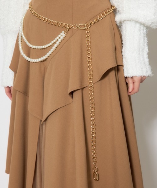 【華やかなチェーンとフェイクパールベルト】■ポイントスタイリングのポイントになるくらいの大きさのチェーンとフェイクパールでデザインされたベルトです。3WAYで楽しめるデザインもポイント。■ディテール綺麗目のフェイクパールとクールなチェーンで華やかにしています。横に垂れるデザインは3連にもできるようにしました。■スタイリングデニムパンツやワンピース、スカートでも上からセットして垢抜けスタイルができます。アップヘアーに合わせるのが特におすすめです。■ブランドのお気に入り登録新作アイテムの入荷や人気アイテムの再入荷、おすすめトピックスなど、いち早くブランドの情報を受け取ることができます。[注意事項]※弊社管理上のカラーを表記しており、タグのカラー表記と異なる記載となっている場合がございます。※商品画像の色味は、屋外や屋内の光の照射や角度により実物と色味が異なる場合がございます。※着用、お取り扱いの際は、アテンションタグをご確認ください。rienda BRAND CONCEPT女性らしさに大人なエッジを効かせ艶やかさに人を魅了させるそんなセンシュアルなデザインを表現~The beauty of being yourself is essential~こちらの商品はrienda独自の採寸方法となっています。本サイトのサイズガイドと採寸方法が異なる場合がありますのでご了承ください。