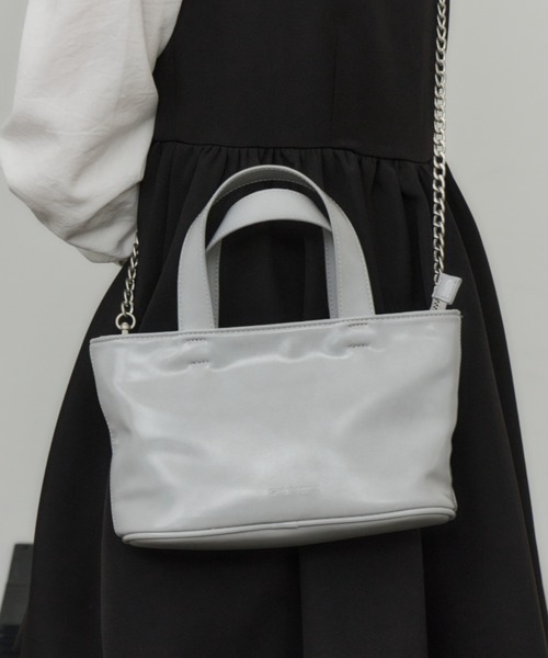 ■POINT・コンパクトな見た目ですが、ペットボトルなどもすっぽり入る便利なサイズ感のハンドバッグ。・セミマットなフェイクレザー素材で、汚れにくく気軽に使用できるのが嬉しいポイント◎・付属の肩紐を付けると、ショルダーバッグとしても使用できます!→肩にかかる部分には本体同様のフェイクレザーを使用しているので、肩に食い込まず使用可能です。→チェーン部分で長さの調節が可能なので、お好みの長さで使用することができます✴︎・内ポケット2つ、外ポケット1つ付きで、細かなアイテムも収納可能◎チャック付き内ポケット→鍵やアクセサリーなどを入れるのにおすすめ!チャック無し内ポケット→ペンやリップ、イヤホンなどを入れるのがおすすめです。チャック無し外ポケット→携帯などの取り出し頻度の高いアイテムを入れるのがおすすめです。・開口部のチャック持ち手部分には、キーホルダーなどを通す事ができる穴が開いているので、お好みでキーホルダーやキーチェーンなどを付けてカスタムする事ができます!■こんなものが入ります✴︎・ペットボトル→500ml前後のサイズまで・折りたたみ傘や折りたたみ日傘・単行本や文庫本・手帳・ペンなどの筆記用具(内ポケットに収納可能)・携帯・iPad mini・お財布・ポーチ・鍵やイヤホン■COLORWHITE / BLACK / BLUE GRAY / YELLOW / RED------------------透け感:なし裏地:ありポケット:あり(内側2つ、外側1つ)------------------■SIZEFREE幅29cm/高さ15cm/底マチ23×8cm/持ち手長さ28cm/ショルダーチェーン長さ全長118cm▼商品のお気に入り登録再入荷通知や、ラスト1点の通知、セールの通知がいち早く届きます。▼ブランドのお気に入り登録新商品や再入荷など、いち早くブランドのお得な情報が届きます。※画像の商品はサンプルです。実際の商品と仕様、加工、サイズ、素材等が若干異なる場合がございます。※ご注文いただいた予約商品のお届け時期の確認は、注文履歴ページより行えます。