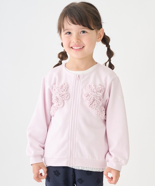 フロントのフリルデザインがポイントになっている羽織りです。 シンプルなワンカラーでまとめており、普段使いに重宝します。 ファスナー仕様で開け閉めしやすいのもポイント。 汚れが落ちやすい防汚加工をほどこしているため、ご家庭で簡単にお洗濯できます。 内側にお名前を記入できるタグつき。 両側にポケットがついています。 【透け感】透けない 【生地の厚さ】普通 【伸縮性】あり 【裏地】なし 【ポケット】あり