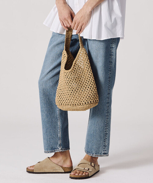<デザイン>- 熟練の職人が丁寧に編み上げたショルダーバッグ- コーン調の編み柄- ワンショルダー<素材>- パルプ原料のペーパーラフィア- ナチュラルな染めムラ- ハンドメイド特有の温かみのある風合い※ハンドメイドのため編み目やサイズ感に個体差がございます。※着用、お取り扱いの際は商品についておりますアテンションタグ、洗濯ネームを必ずご確認ください。※モデル撮影画像は、光の当たり具合やパソコンなどの閲覧環境によって、実際の色味と異なって見える場合がございます。商品の色味は商品単体で撮影した詳細画像をご参照ください。メーカー品番:#ND-H0383 PRAINDIA INDUSTRY | インディア インダストリーインド特有の歪な糸で織り上げた素材や、くらしの中で育まれた伝統的な技法を活かし、文化や時代を超えて、今に合わせ進化し続けていく。