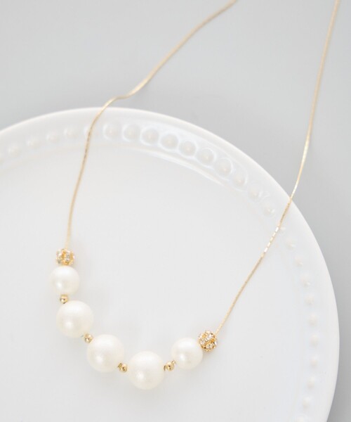 上品な輝きを添える、ロンデル×パールの華やぎネックレス。【デザイン・シルエット】・艶やかなパールと、きらりと輝くロンデルを組み合わせた上品なネックレス。・パールの丸みとロンデルの輝きが、首元にさりげない華やかさをプラス。・コーディネートに程よい存在感を与えるバランス。【カラー】・ゴールド、シルバーの2色展開。【スタイリングポイント】・シンプルなブラウスやニットに合わせて、きれいめなデイリースタイルに。・ワンピースと合わせて、セレモニーやオケージョンスタイルに。・無地トップスに、アクセントとして取り入れるのも◎。※撮影時の光、お使いのモニター環境によって色の見え方が違う場合がございます。