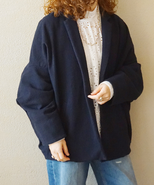 【2025AW】journal standard luxe国内の尾州産地で織り上げた無地調のツィード・ツイル素材です。従来のウール混やラメの意匠糸ではなく、綿・ポリエステル・アクリルのスラブ糸を使用しており、幅広いシーンにも対応していただけるツィードに仕上げています。オーバーサイズシルエットのテーラードカラージャケット。細めのシャープな襟と、生地が脇側に落ちることで生まれる、丸みを帯びたシルエットが特徴です。カマ底に大きくゆとりがあり、厚手のインナーとの相性も良く、ツィードでありながら無地のように見えることで、様々なシーンで着用いただけます。ネイビー 全1色。 FREEサイズ〈同シリーズについて〉MIXツイードライダースベスト(商品番号:25011440221040)もございます。※取り扱いについては、商品についている品質表示でご確認ください。※照明の関係により、実際よりも色味が違って見える場合があります。またパソコン・スマートフォンなどの環境により、若干製品と画像のカラーが異なる場合もございます。※商品の色味は、商品アップ画像をご参照ください。モデルサイズ:身長:163cm 着用サイズ:フリー本体:ドライクリーニング・裏地有りです。