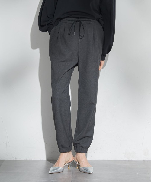 【デザイン】リラックス感がありながらも、すっきりとした印象で着用できる裏起毛ジョグパンツ。腰まわりから太ももにかけては程よくゆとりを持たせ、裾に向かって自然に細くなるシルエットで、カジュアルになりすぎないバランスに仕上げています。裾はジョグ仕様で足元に軽さをプラスし、パンプスやフラットシューズとも好相性。ウエストはゴム+ひも仕様で、ストレスのない穿き心地とサイズ調整のしやすさを両立しています。裏起毛ながらももたつきにくく、きれいめトップスとも合わせやすいため、オンオフ問わず活躍する一着です。【素材】ポリエステル・レーヨンをベースに、アクリルとポリウレタンを混紡した裏起毛素材を使用。吸湿発熱機能を備えており、穿いた瞬間から暖かさを感じられます。ソフトでなめらかな風合いと、ほどよいストレッチ性があり、長時間の着用でも快適。裏地なしでも肌あたりがやさしく、秋冬シーズンに取り入れやすい素材感です。【WEB限定】こちらの商品はWEB限定での展開となります。----------------------------------------------------------------洗濯方法家庭洗濯:液温は30℃を限度とし、洗濯機で非常に弱い洗濯ができる。自然乾燥:日陰の吊り干しがよい。アイロン:底面温度120℃を限度としてアイロン仕上げができる。ドライクリーニング:石油系溶剤による弱いドライクリーニングができる。----------------------------------------------------------------■モデル身長 165cm/着用サイズ 9号※商品タグに記載されたサイズはヌードサイズです。実際の商品のサイズは商品情報の実寸をご確認ください。※画像の商品はサンプルとなりますので実際の商品と仕様、加工、サイズが若干異なる場合がございます。※お客様のモニター環境により実際のお色と多少異なる場合がございます。※撮影状況や光の当たり具合により、色合いが異なって見える場合がございます。----------------------------------▼商品のお気に入り登録ハートマークをクリックし、お好きなカラーを選んでお気に入りに登録完売カラーの再入荷通知や、ラスト1点の通知、セールの通知も受け取ることができます。▼ブランドのお気に入り登録新商品や再入荷等、いち早くブランドのお得な情報を受け取ることができます。----------------------------------