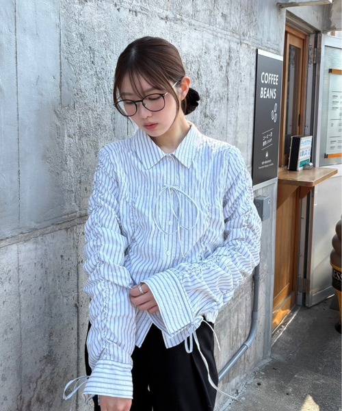 昨年ご好評いただいたシャツが今年も登場! 今年は異ピッチストライプ3色に加え、トレンドのドット柄を揃えています。 縦横シャーリングデザインで表情ゆたかに仕上げたシャツ。 風合いのあるシャツ素材を使用しています。 袖口カフスに共地リボンを通したドロストデザインがポイント。 リボンの絞り具合いでサイズ調整も可能です。 デニムやナロースカート、トレンドのハーフパンツとのスタイリングがおススメです。 ※モデルの着用画像の場合、光の当たり具合により、実際の色味と異なって見えることがございます。色味は、商品単体の画像をご参照ください。 商品特性 ■透け感:(ストライプ)なし、(ドット)ややあり ■生地の厚さ:普通 ■裏地:なし ■伸縮性:なし ■光沢:なし ■シルエット:スタンダード --------------------------------------------------- ◆商品のお気に入り登録◆ お気に入りアイテムの値下げ・再入荷・在庫1点などの通知を受け取ることができます。 ◆ブランドのお気に入り登録◆ 新商品や再入荷、セール、クーポン配布などお得な情報を受け取ることができます。 ---------------------------------------------------