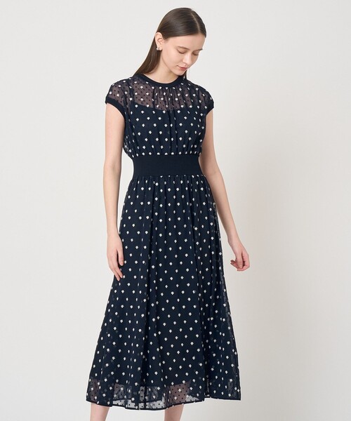 【Spring & Summer Collection 2026】 ドットドビーシフォンに配色のフラワー刺繍を施した素材。 フラワー柄ですが、遠目ではドットのように見えるので、可愛くなりすぎず落ち着いた印象に見せてくれるのがポイント。 襟、袖、ウエストをニットリブ仕様にしたデイリーに着やすいワンピース。 ウエストは総ゴムで快適な着心地を実現。ブルゾンやジャケットと合せたり、お好みのベルトをプラスしたりと、夏まで活躍しそうなワンピースでお勧めです。 model:174cm 着用サイズ:38 【ANAYIサイズ表】 34サイズ:5号 XSサイズ相当 36サイズ:7号 Sサイズ相当 38サイズ:9号 Mサイズ相当 ・「商品のお気に入り登録」や「ブランドのお気に入り登録」で新商品や再入荷通知、セール通知などのお得な情報を受け取ることができます。 ・照明の関係により、実際よりも色味が違って見える場合がございます。 またパソコン・スマートフォンなどの環境により、製品と画像のカラーが異なる場合もございます。予めご了承ください。