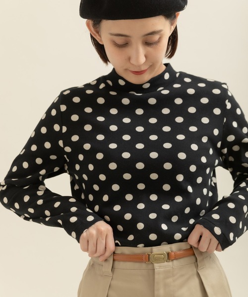 CHILDWOMANでは定番になりつつあるドットプリントのシリーズ。柔らかなフライスにプリントをのせたオリジナル生地は、綿100%でしっかりとした肉感があり、フライスならではの伸縮性もあるので着心地も抜群です。家庭洗濯も可能で、デイリーに使って頂けるのも長く愛されるロングセラーの秘訣。流行に左右されない定番のドット柄もCHILD WOMANオリジナル生地で、ありそうで他にはない特別感のあるアイテムに。ベーシックに使いやすいアイボリーとブラックでの2色展開で、コーディネートのアクセントとしてもオススメです◎シリーズでクルーネック(0101CT020261)もご用意しております。-------------------------------------------------------------【 価格改定のお知らせ 】昨今の原料や輸送コスト高騰に伴い2026年1月29日の販売分から価格改定を実施させていただくこととなりました。今後もみなさまに喜んで頂ける商品をお届けできるよう努めて参ります。価格改定以前は以下の品番で販売しておりました。※仕様や素材などの変更はございません。旧ブランド品番:0101CT016232 商品名:フライスドットプリント ハイネック長袖プルオーバー------------------------------------------------------- -----------------------透け感:なし伸縮性:あり-----------------------【素材の特性・お取り扱いの注意】・取り扱いの注意については取り扱い表示をよくご確認の上、着用をお願い致します。・この製品は、素材の特性上汗や雨等でぬれた時、強くこすれた場合等、色落ちし、他の衣料に移染することが有ります。また、単独洗いでも水洗いする事によって、淡い色の部分に色移りしてしまう可能性があります。ぬれたままでの10分以上放置しない様にご注意ください。※撮影画像は、光の当たり具合やモニターの環境により色味が違って見える場合があります。あらかじめご了承ください。