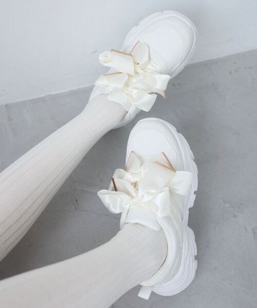 可愛いだけじゃない、さらに使いやすく。履き心地とバリエーションを追求したMAJESTIC LEGONのシューズ&バッグメインのGOODSライン「Mimi」(ミミ) 映えリボンが主役!ビッグリボンボリュームソールスニーカー■デザイン存在感のあるサテンリボンをあしらった、足元が一気に華やぐスニーカー。大きめのリボンがコーディネートのポイントになり履くだけで“盛れる”デザインです。リボンの先端にはメタルパーツを施し、甘さの中にさりげない上品さをプラス。ボリュームのあるソールとツイードのラインを組み合わせて可愛さの中に程よくきちんと感のある一足に仕上げました。■履き心地・機能・クッション性のあるソールでスニーカーならではの歩きやすさ・足全体を包み込むようなフィット感・長時間のお出かけにも使いやすい履き心地・見た目に反して軽やかに履ける設計■サイズ感程よくゆとりのある履き心地。通常と同程度のサイズ感のため、普段お選びのサイズを目安にお選びください。MAJESTIC LEGONシューズ対応サイズSサイズ 約22.0~23.0cm 重量358gMサイズ 約23.0~24.0cm 重量368gLサイズ 約24.0~25.0cm 重量378gXLサイズ 約25.0~26.0cm 重量388g※素材の特性により若干差異が生じる事がございます。※重量は片足の重さとなっております。■スタイリングワンピースやスカートと合わせて甘めスタイルのアクセントとして取り入れるのがおすすめ。デニムやカジュアルコーデに合わせれば、足元を主役にした映えスタイリングが完成します。デイリーからお出かけ、イベントシーンまで幅広く活躍する一足です。■商品のお気に入り登録 再入荷通知やのこりわずか、お得なプライスダウンの情報も受け取ることができます。ぜひご登録ください◎※サンプルでの撮影の為、製品と仕様が異なる場合がございます。※商品の色味は、撮影場所や光のあたり具合などにより色味が違って見える場合がございます。また、お客様のお使いのモニター環境などにより色味が異なって見える場合がございます。予めご了承の上ご注文下さい。※S・XLサイズはWEB限定サイズとなります。