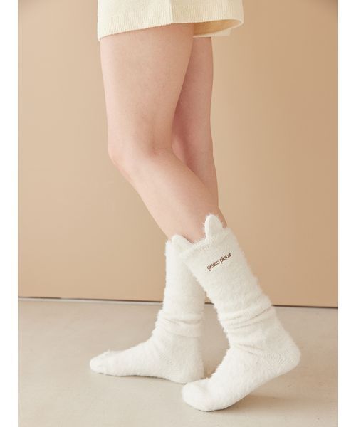【猫耳デザインに胸キュンするロングソックス】 【Design/Styling】 春の訪れを感じさせる、明るいピケカラーをまとったキャットシリーズの雑貨です。はき口に猫耳をあしらった、胸キュンなデザインのロングソックス。ふんわりとした柔らかなニット素材にワンポイントのロゴ刺繍入りで、ショートパンツやワンピースの足元に温もりを届けます。色はオフホワイトとベージュの2色展開。同シリーズのルームウェアと合わせたり、猫の日に向けてのギフトなどにもおすすめです。 ※照明の関係により、実際よりも色味が違って見える場合があります。 またパソコン・スマートフォンなどの環境により、若干製品と画像のカラーが異なる場合もございます。予めご了承ください。 商品の色味は、商品単品画像をご参照下さい。 ※商品画像はサンプルのため、色味やサイズ等の仕様に変更がある場合がございますので、予めご了承ください。