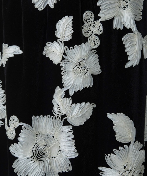 - 2026 VACANCY SPRING COLLECTION -立体感で魅せる、花柄ロープ刺繍スカート。◆FABRIC繊細な花柄をロープ刺繍で表現した、ナローシルエットのスカート。マットなベロア素材に、ベースはブラック。立体感のある刺繍を施すことで、平面的になりがちなロングスカートに奥行きと存在感をプラスしました。すっきりとしたIラインで落ち感のあるシルエット。身体のラインを拾いすぎず、縦のラインを強調するため、スタイルアップ効果も期待できます◎ロング丈ながら重たく見えず、モードからフェミニンまで幅広いスタイリングに対応!カラーは2色展開。・ブラック×アイボリー刺繍:コントラストが際立つ華やかな印象・ブラック×ブラック刺繍:さりげない表情が楽しめるモードな印象日常のフォーマルシーンとしてオケージョンや特別なシーンにも活躍する一着です。入園・卒園から卒業式まで幅広く華やかにしてくれるアイテムです!◆STYLEタイトなニットやリブトップスを合わせて、ナローシルエットを活かした洗練スタイルに。ルーズなスウェットやシャツを合わせれば、刺繍の上品さをカジュアルダウンした今っぽい着こなしに。ショートブーツやポインテッドトゥのシューズで、全体をすっきりまとめるのがオススメです◎・・・・・・・・・・・・・・・・・・・・透け感:なし裏地:なし伸縮性:あり光沢感:なし生地の厚さ:普通・・・・・・・・・・・・・・・・・・・・【お買い物をお楽しみいただく為に】▼お気に入り登録をオススメ致します▼♡をクリックして下さい。・《商品のお気に入り登録》で再入荷通知や、ラスト1点の通知、セールの際の通知も受け取ることができます。・《ブランドのお気に入り登録》で新作商品や再入荷など、お得な情報を受け取ることができます!【ATTENTION】 ※画像の商品はサンプルです。実際の商品と色味、仕様、加工、サイズ、素材等が若干異なる場合がございます。※撮影場所やお使いのモニター環境により若干お色味が異なる場合がございます。※製品によっては染料の特性上、湿った状態や汗をかいた状態での長時間の放置、または摩擦により、他のものへ色移りする恐れがありますので、着用時にはご注意下さい。 ※お洗濯については商品の洗濯タグ表記をご確認ください。※風通しがよく、湿気の少ない日の当たらない場所で保管して下さい。 ※また製品加工上、お手元に届く際に匂いが生じる場合がありますが、 ご使用を続けていく事により匂いは軽減されます。